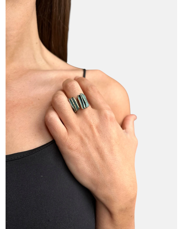 Anillo Sol y Luna abierto y ajustable en bronce patinado hecho a mano.