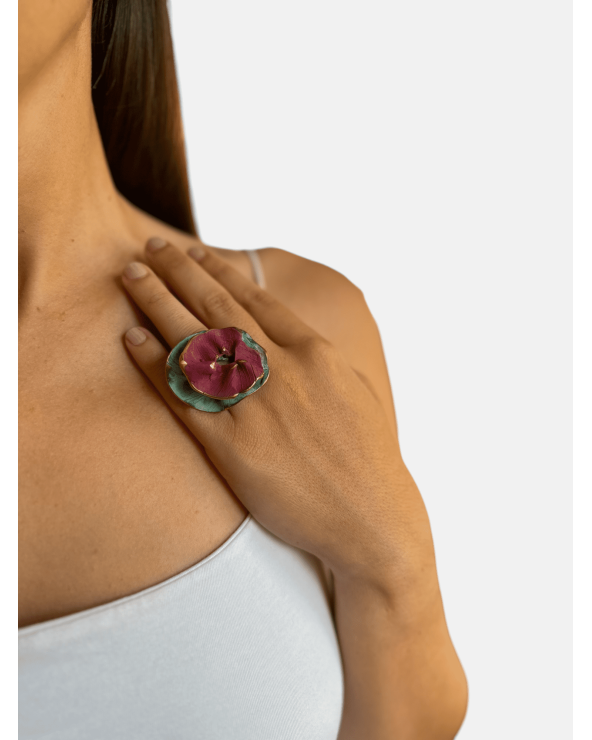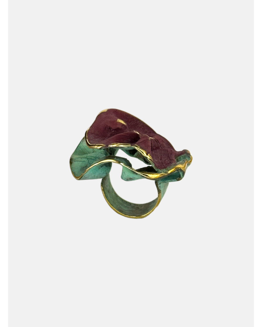Anillo Naturaleza abierto y ajustable en bronce patinado hecho a mano.