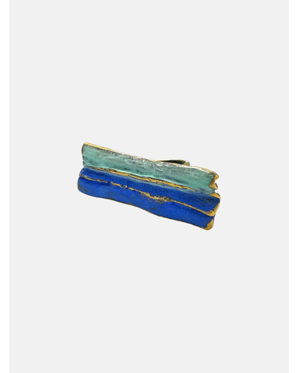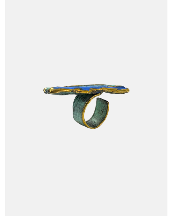 Anillo Tuareg Spirit abierto y ajustable en bronce verde, azul y dorado hecho a mano.