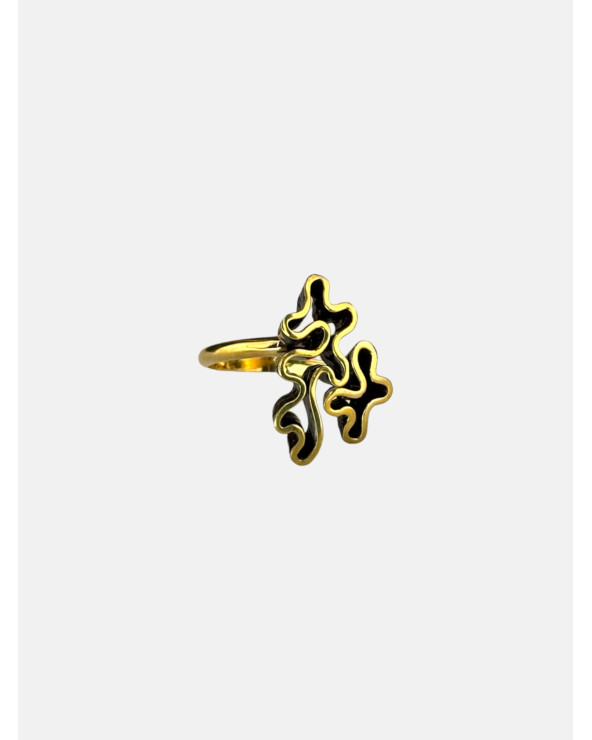 Anillo Bután ajustable en plata de ley 925 con acabado galvanizado marrón chocolate y chapado en oro 23K en el filo.