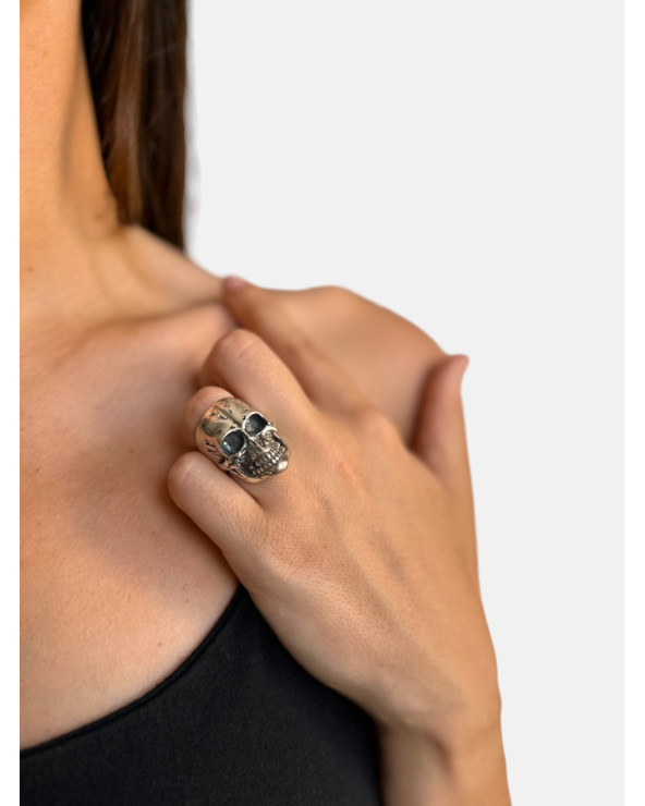 Anillo Calavera ajustable en plata de ley 925 acabado brillo y óxido.
