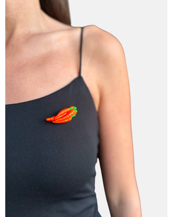 Pin Recollida, brócoli, tomate o zanahoria, o en arcilla polimérica de varios colores modelado a mano con cierre tipo pin.