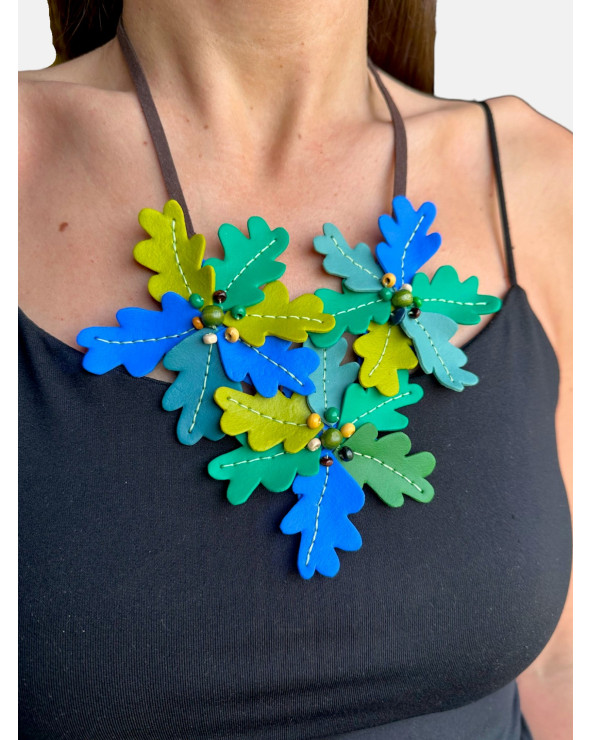 Broche Carballo en arcilla polimérica de varios colores y cuentas hecho a mano con cierre de seguridad.