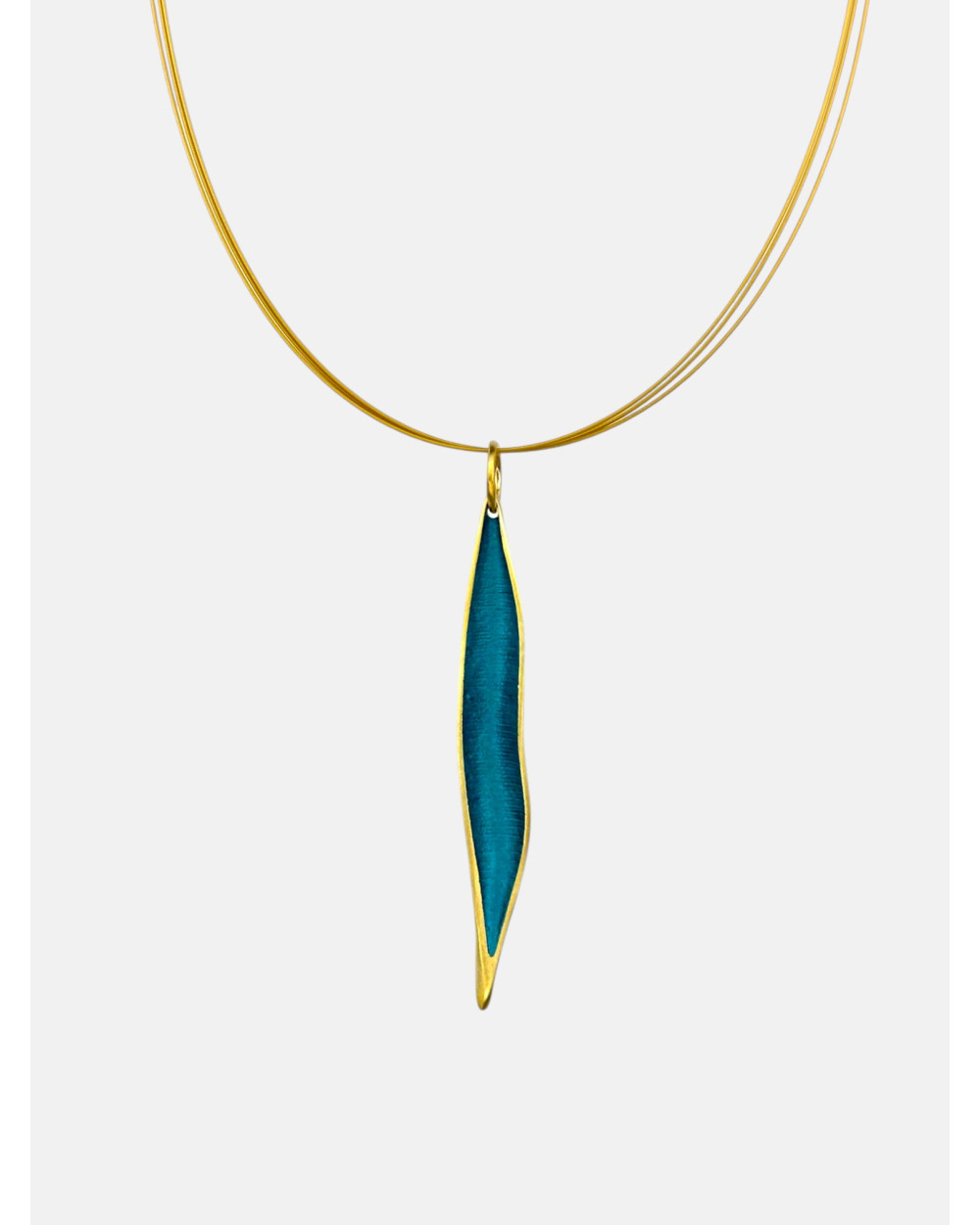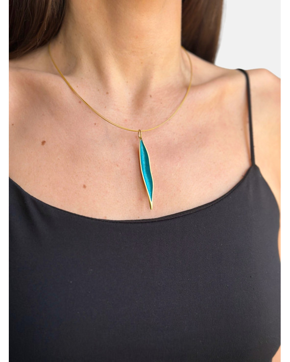 Colgante Kenia en metal con baño de oro de 24 quilates en parte exterior e interior con pigmentos naturales realizados con la técnica SIMELTECH®, montado en cordón de varios aceros.