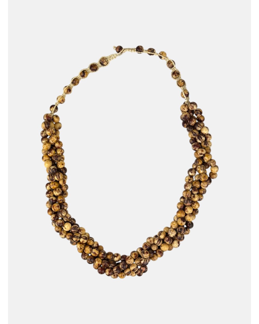 Collar 100% natural de semillas de açaí montado en fibra de tucúm hecho a mano por la comunidad indígena Baré del Amazonas de Brasil.