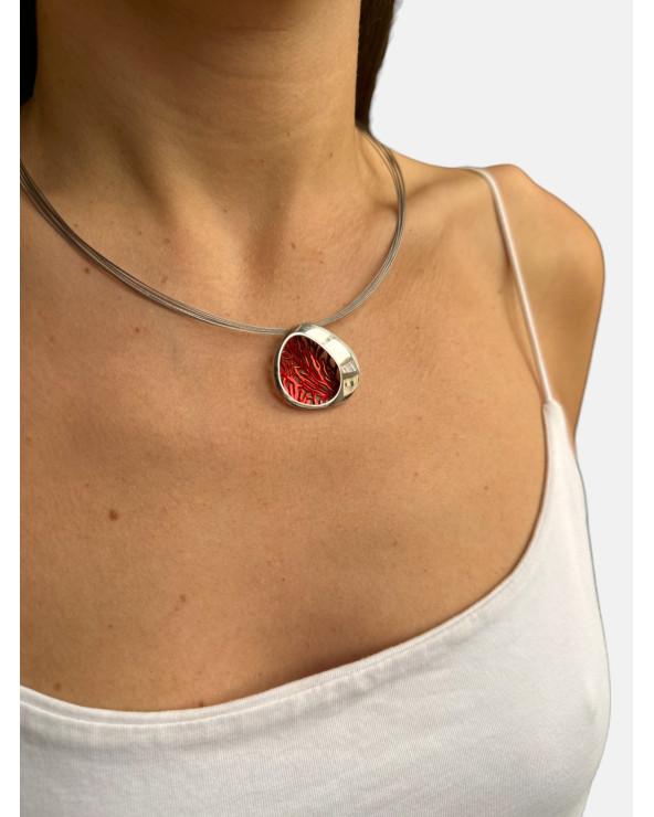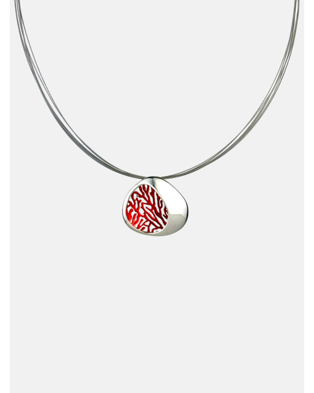 Colgante Gorgonia pequeño en plata de ley 925 con acabado galvanizado en interior y pulido brillo a mano en exterior montado en cordón de varios aceros.