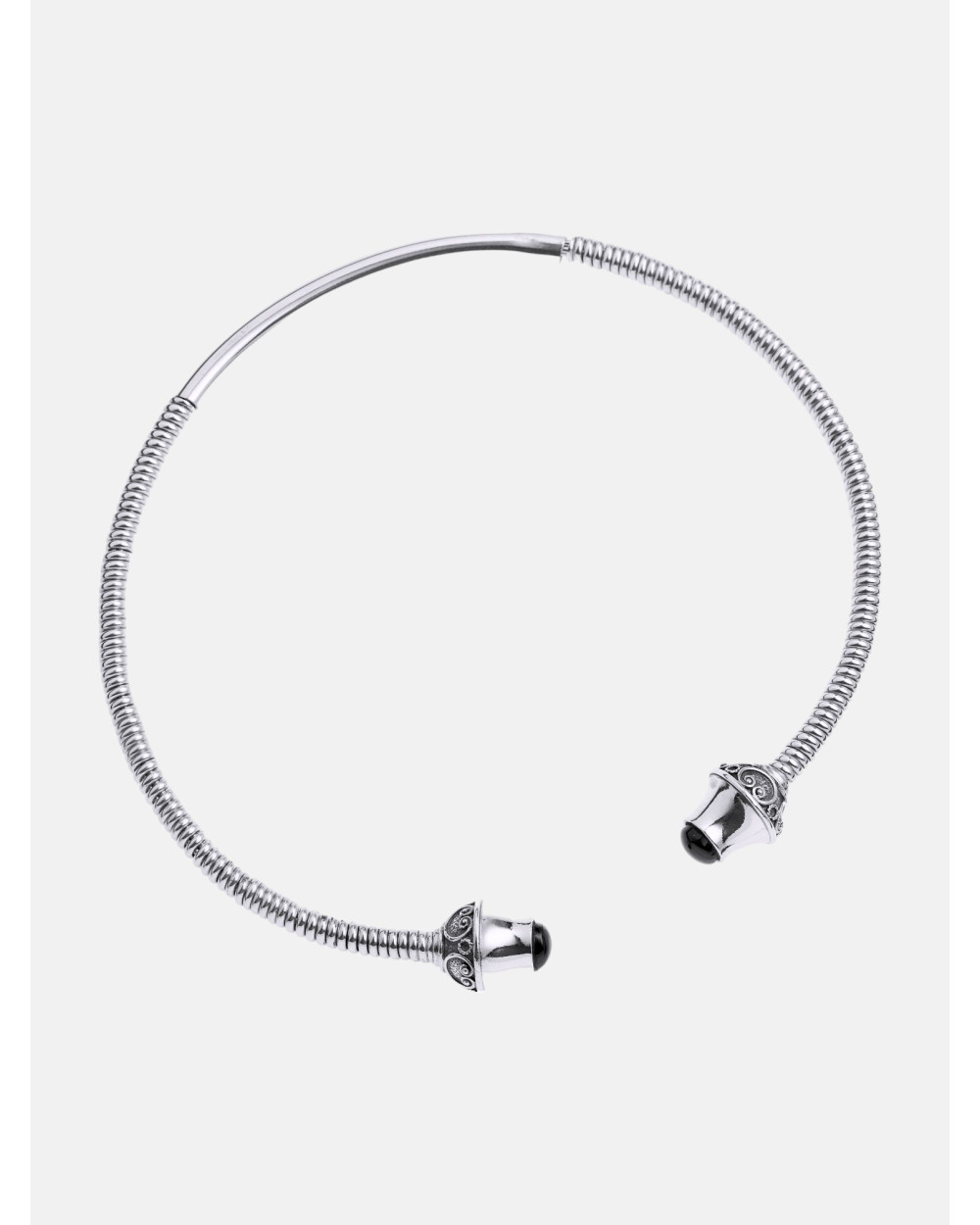 Collar Torque filigrana en plata de ley 925 con aplicaciones de azabache.