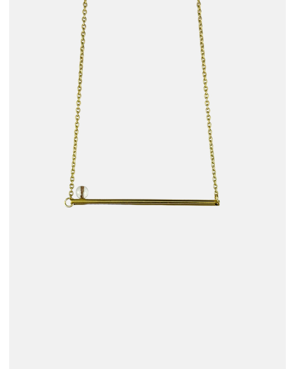 Collar Tubular en latón y vidrio borosilicato montado en cadena hecho a mano.