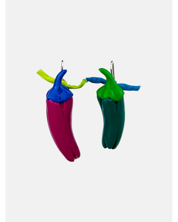 Pendientes Pimientos en arcilla polimérica de varios colores y gancho de plata de ley 925 hechos a mano.