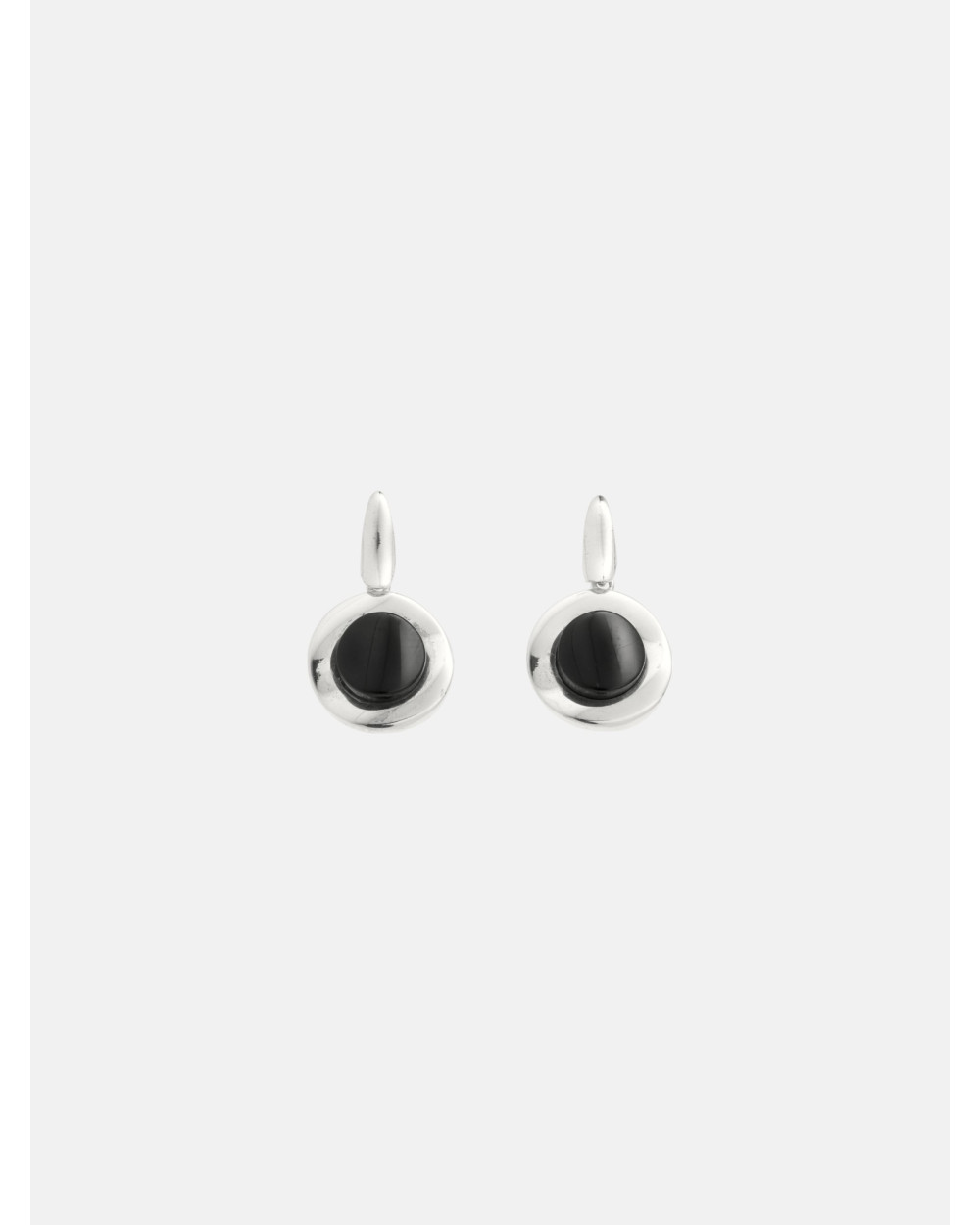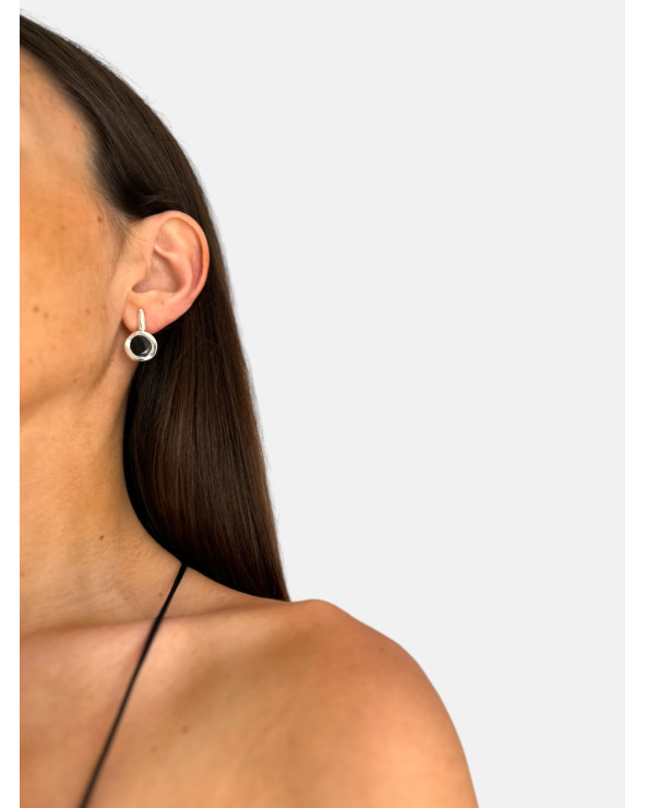 Pendientes Compostela pequeños en plata de ley 925 y azabache con barra y cierre de presión.