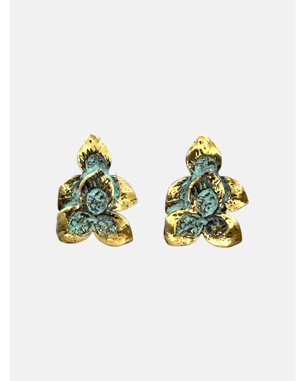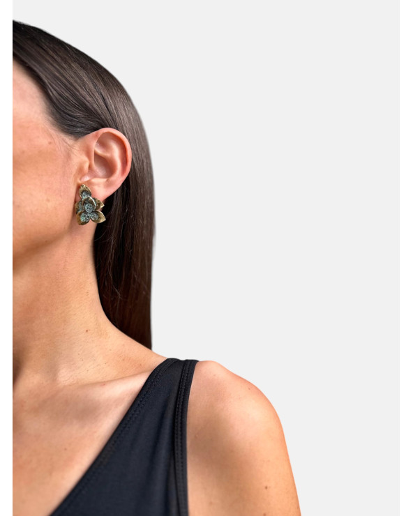 Pendientes Trébol en bronce patinado verde y dorado con cierre de presión hechos a mano.