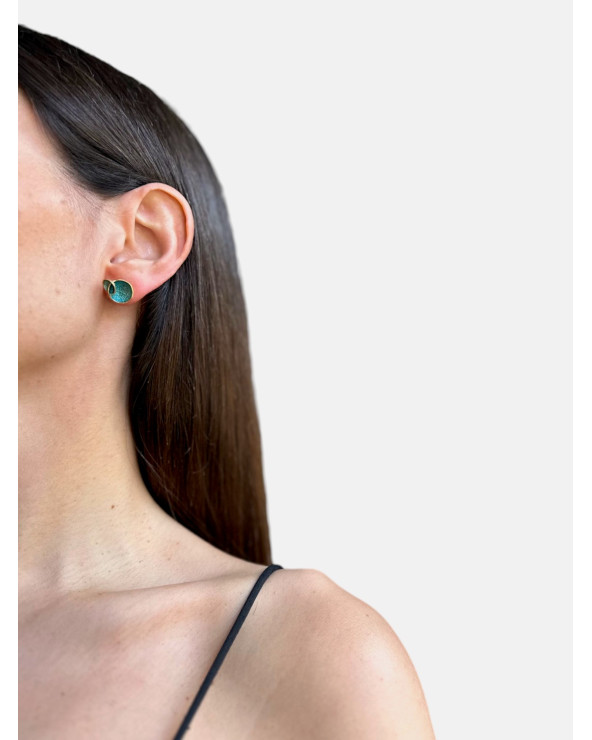 Pendientes Molly pequeños en metal con baño de oro de 24 quilates en parte exterior e interior con pigmentos naturales realizados con la técnica SIMELTECH® y cierre de presión.