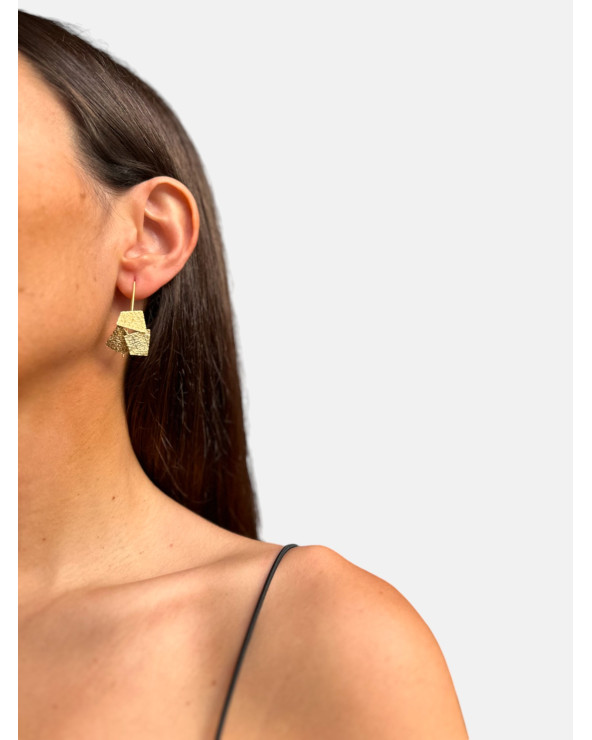 Pendientes Ori en plata de ley 925 chapada en oro 18K con gancho rígido.