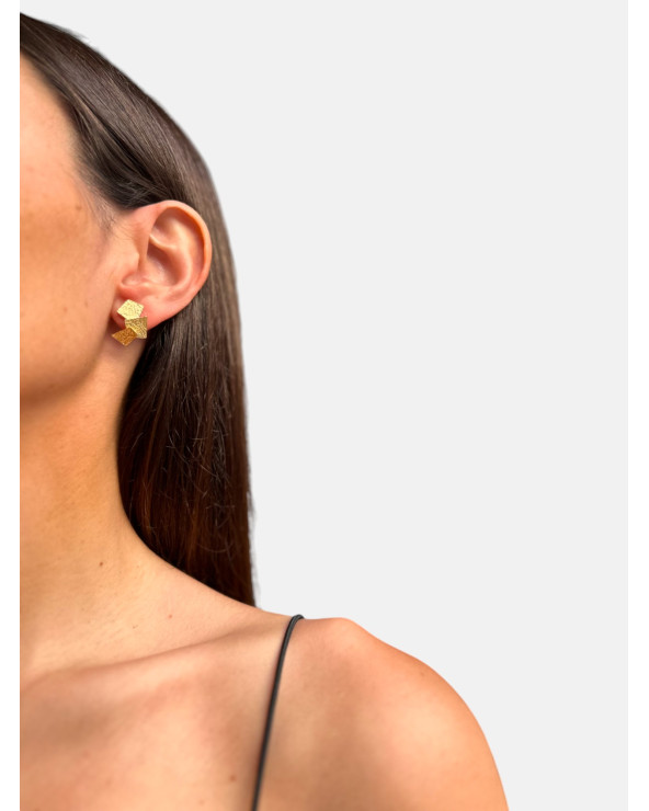 Pendientes Ori en plata de ley 925 chapado en oro de 23K con cierre de presión.