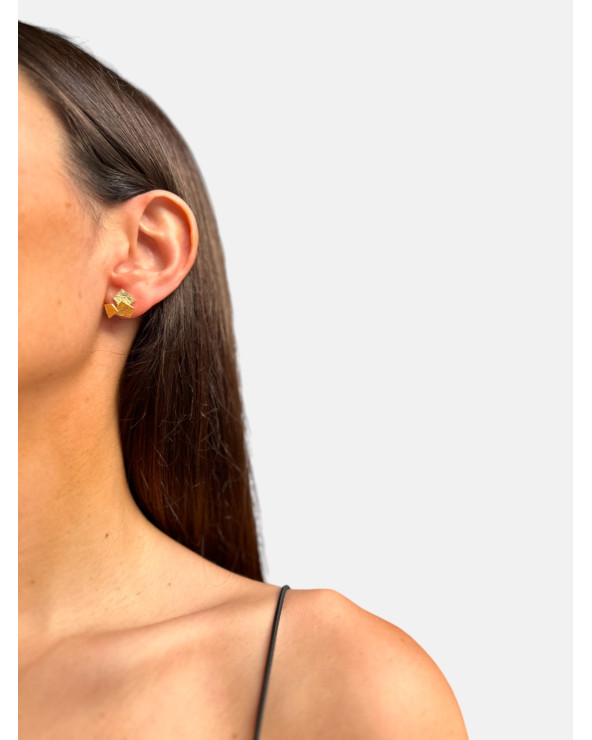 Pendientes Ori mini en plata de ley 925 chapada en oro 18K con cierre de presión.