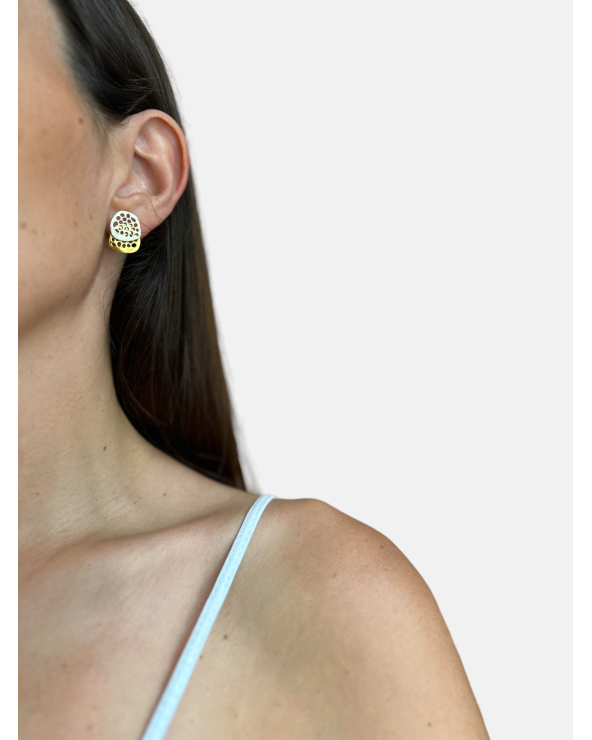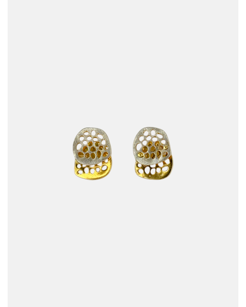 Pendientes Bicolor pequeños en plata de ley 925 mate y chapada en oro 18K con cierre tuerca de presión.