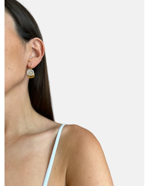 Pendientes Bicolor pequeños en plata de ley 925 mate y chapada en oro 18K con gancho móvil.