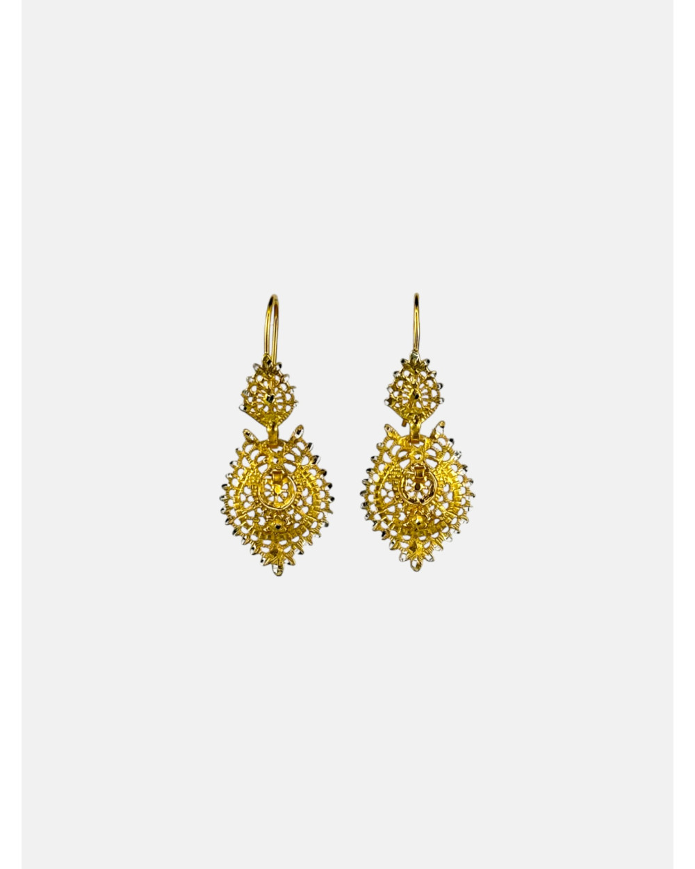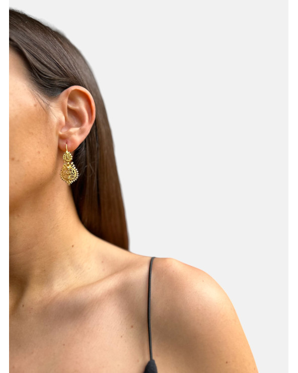 Pendientes Brincos à Rainha en plata de ley 925 chapada en oro 18K y puntas diamantadas. Varios tamaños.