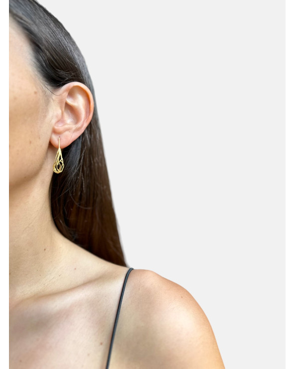 Pendientes Ficus pequeños en plata de ley 925 con baño de oro y gancho rígido.