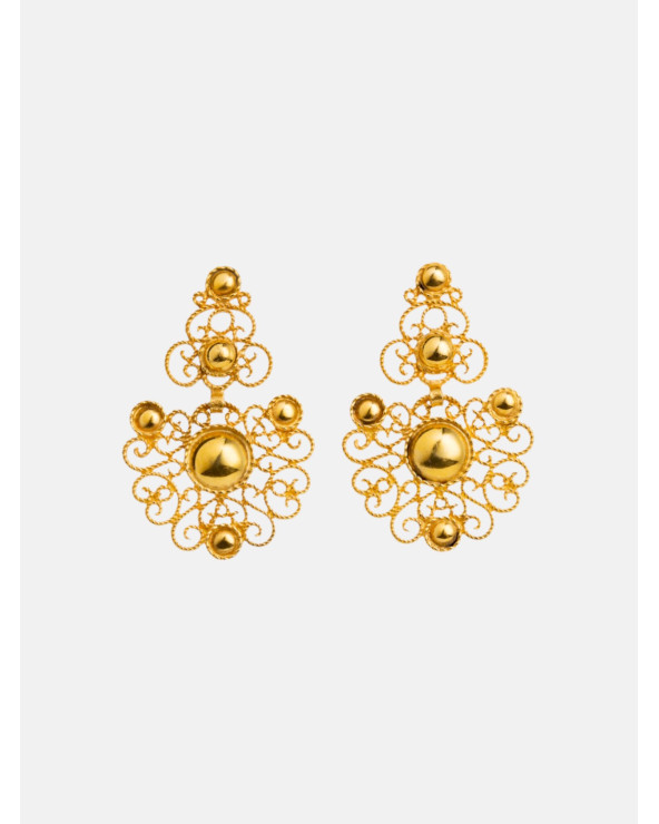 Pendientes Aderezo doble en plata de ley 925 chapada en oro 18K con cierre de presión. Varios tamaños.