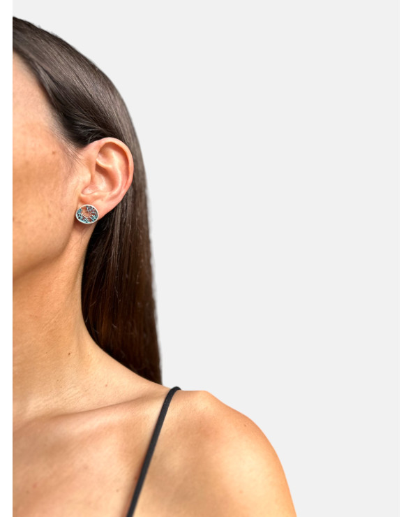 Pendientes Terra presión en plata de ley 925 mate con acabado óxido y pigmentos naturales realizados con la técnica SIMELTECH®.