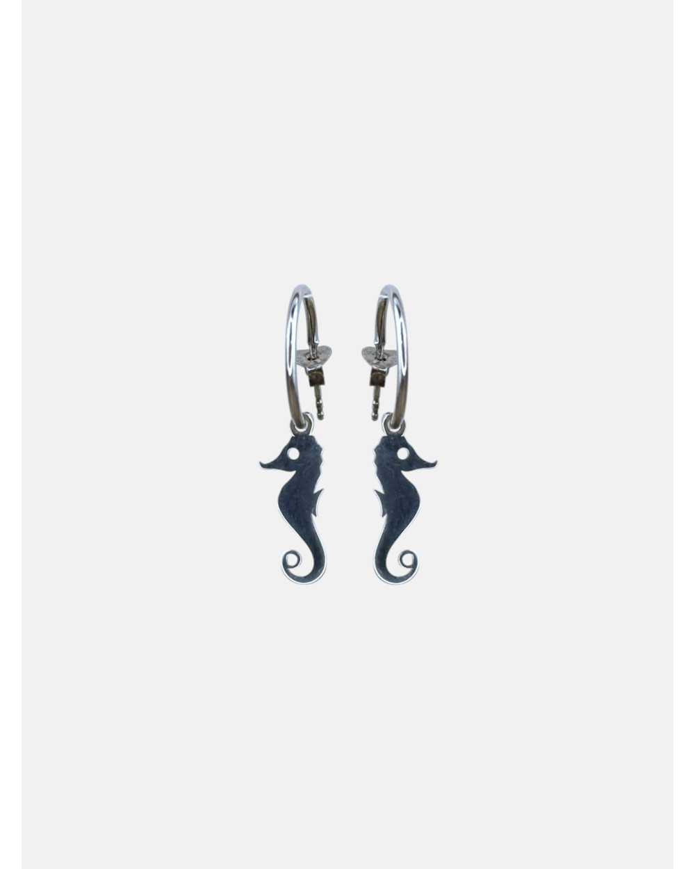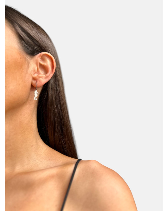 Pendientes Caballito de mar en plata de ley 925 acabado brillo con aro y cierre de presión.