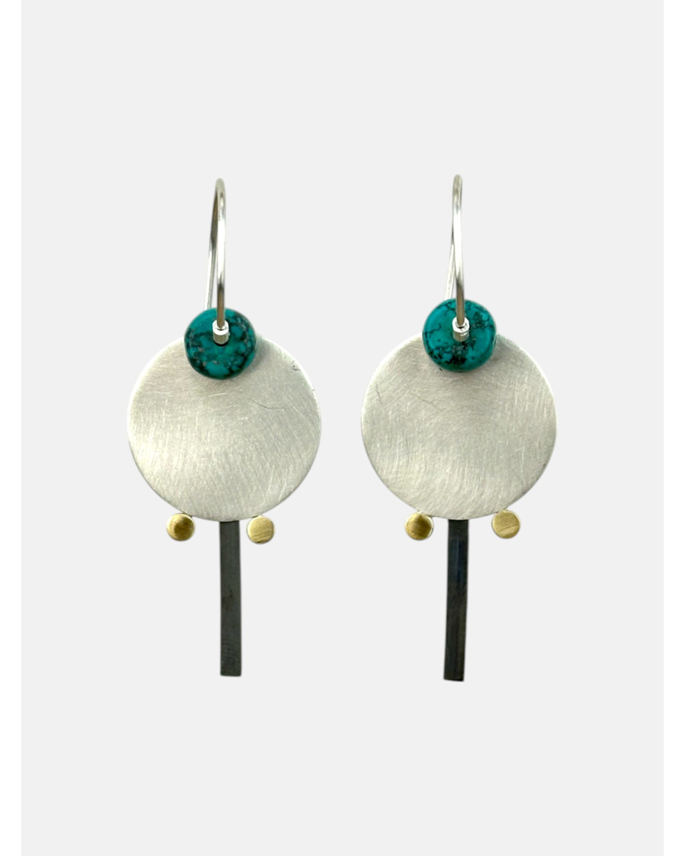 Pendientes Summer 24 en plata de ley 925 acabado texturizado mate y óxido con latón y turquesa con gancho rígido hechos a mano.