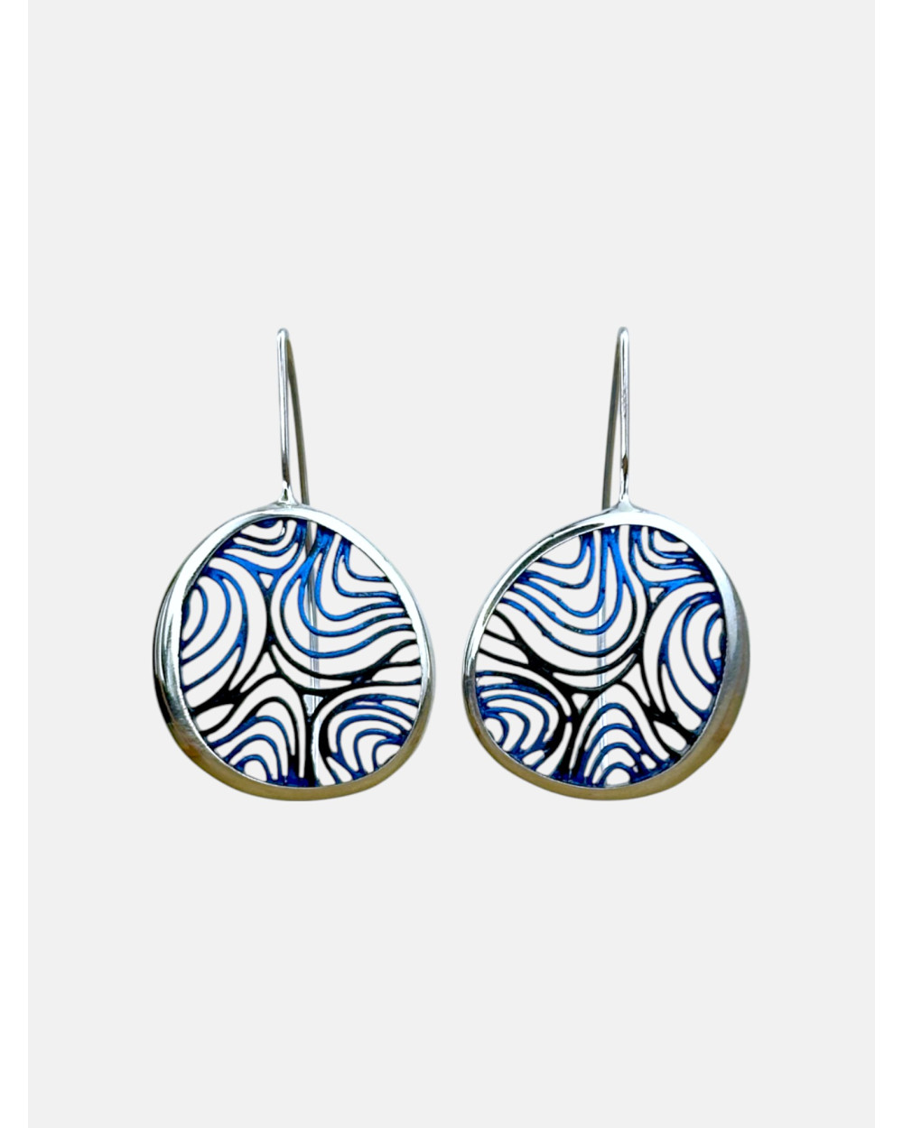 Pendientes Ocean gancho grandes en plata de ley 925 brillo en parte exterior e interior con óxido y pigmentos naturales realizados con la técnica SIMELTECH®.
