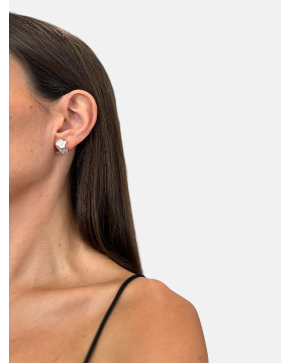 Pendientes Ori en plata de ley 925 acabado texturizado brillo con cierre de presión.