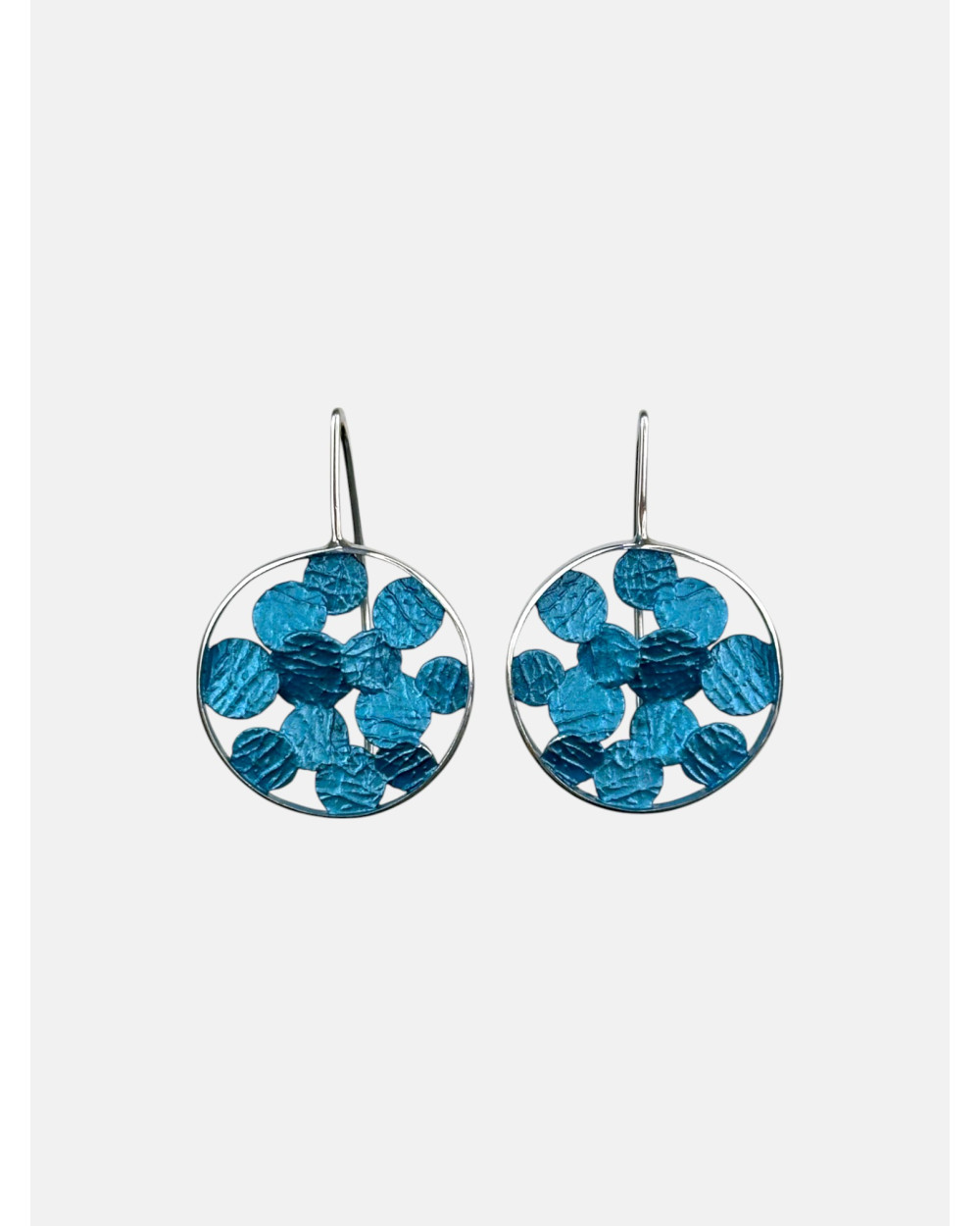Pendientes Sisma en plata de ley 925 acabado brillo con pigmentos naturales realizado con la técnica SIMELTECH® y gancho rígido,