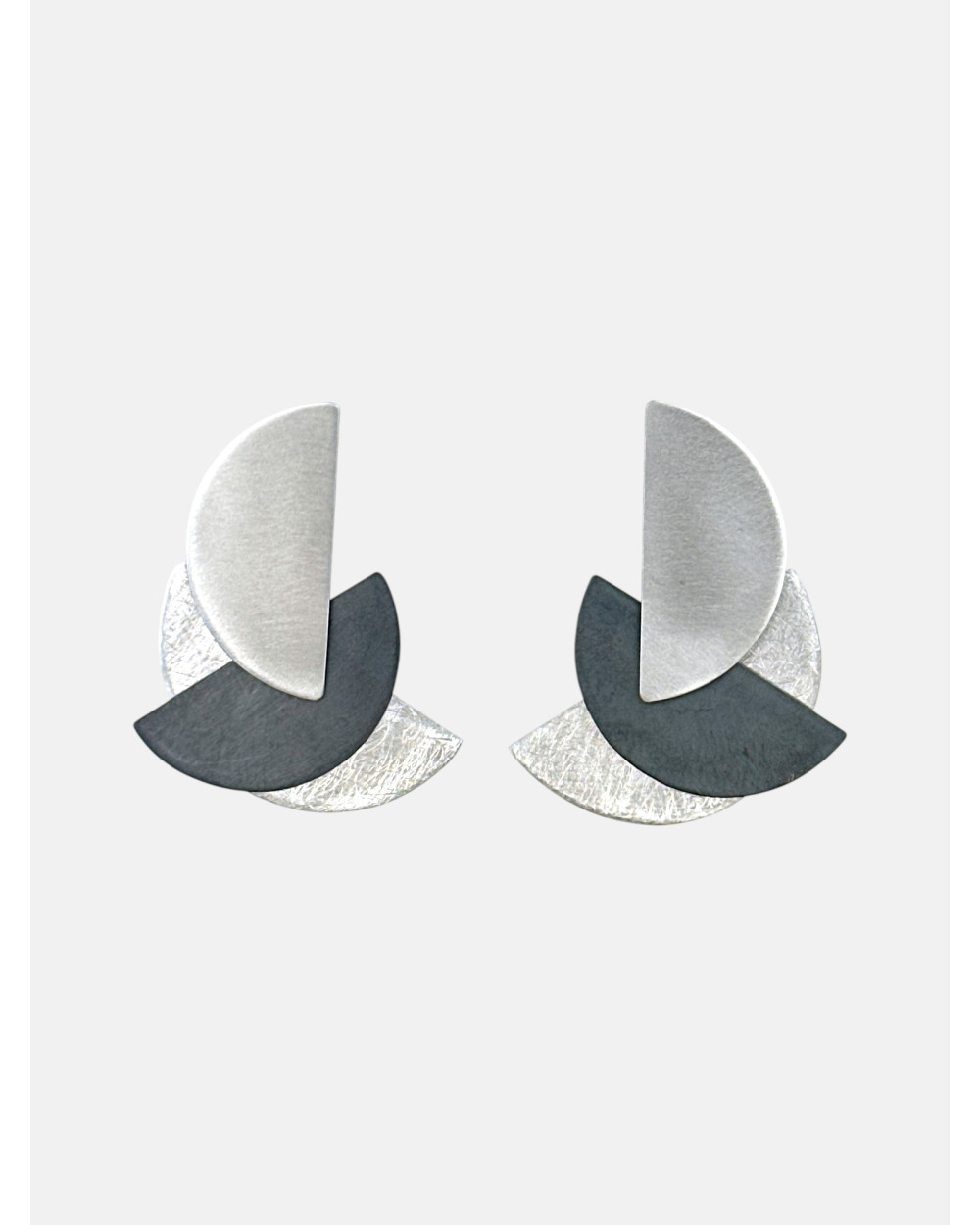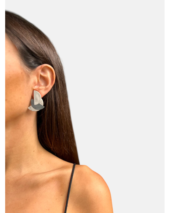 Pendiente Geo Mikado móvil en plata de ley 925 acabado texturizado mate y óxido hechos a mano.