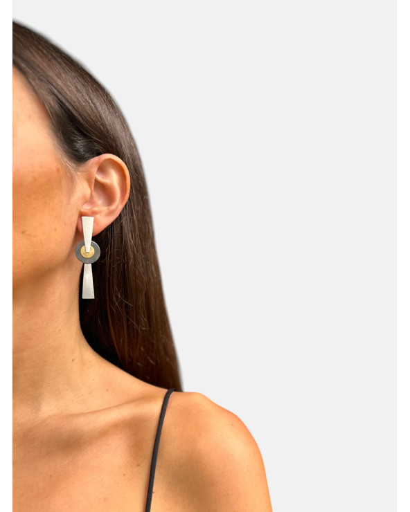 Pendientes Winter 25 en plata de ley 925 acabado texturizado mate y óxido con latón y cierre de presión hechos a mano.