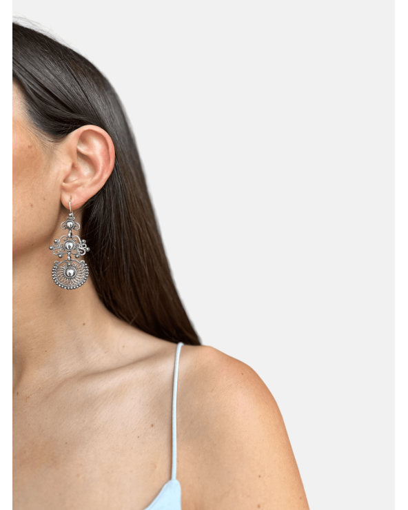 Pendientes Sapo en plata de ley acabada en rodio con gancho rígido.