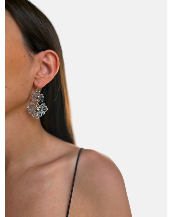 Pendientes Gallega aderezo en plata de ley 925 con gancho rígido.