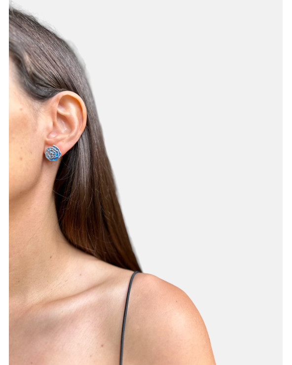 Pendientes Bode presión en plata de ley 925 brillo con pigmentos naturales realizados con la técnica SIMELTECH®.