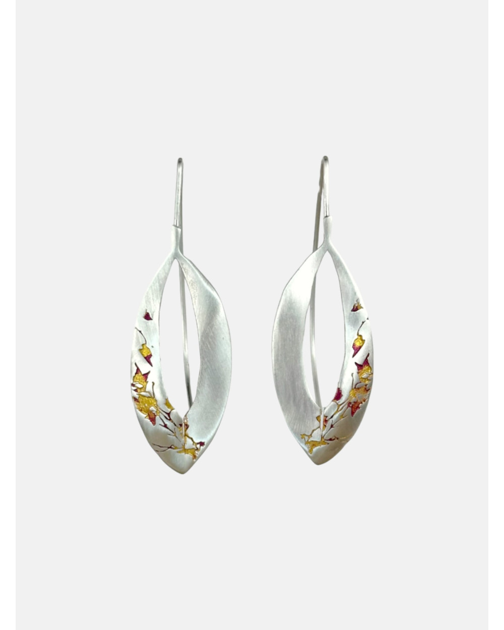 Pendientes Arce grandes en plata de ley 925 acabado mate con pigmentos naturales realizados con la técnica SIMELTECH®.