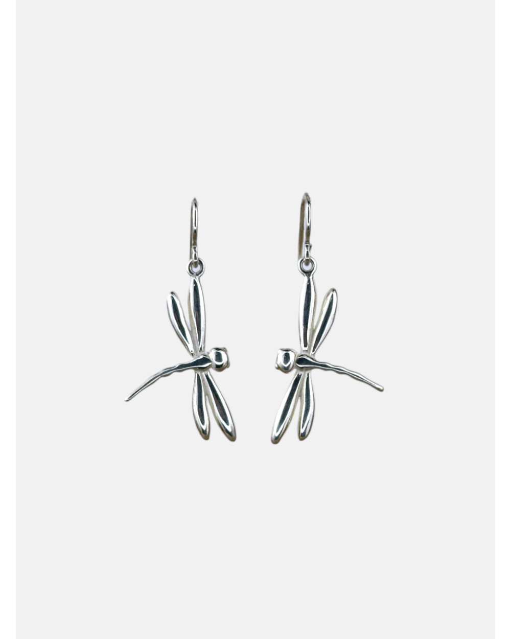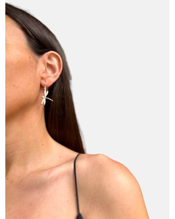 Pendientes Libélulas gancho en plata de ley 925 con acabado pulido brillo.