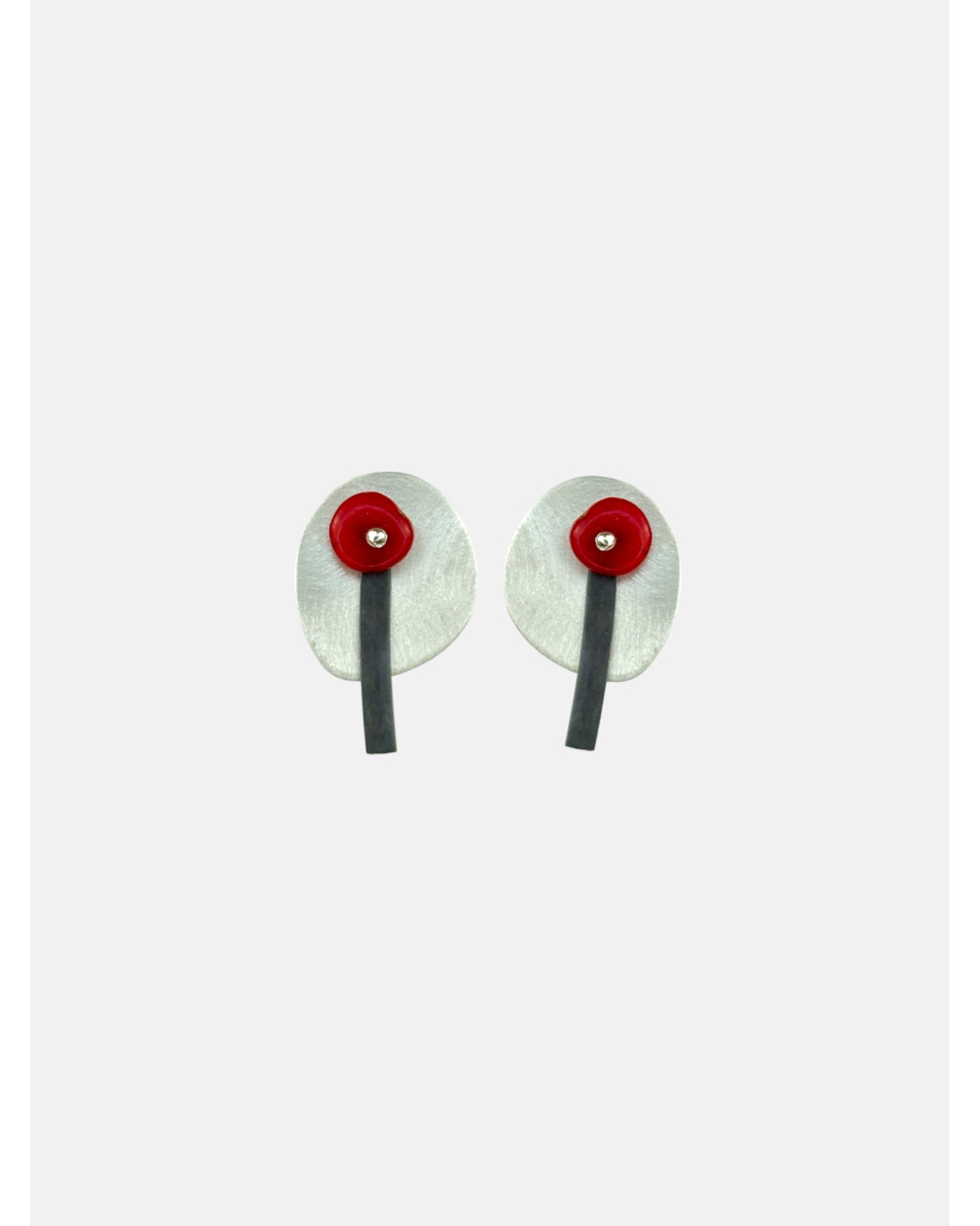 Pendientes Flores en plata de ley 925 acabado mate y óxido y coral rojo hechos a mano.
