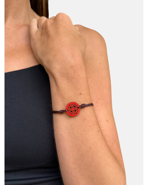 Pulsera Tetraquel Celta en madera de aliso montada en hilo de nailon con cierre ajustable de macramé.