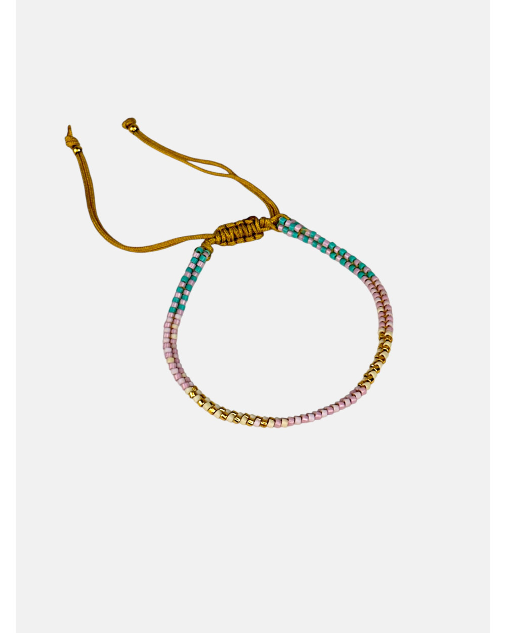 Pulsera de dos hilos de cristal checo de Bohemia multicolor tejida a mano, montada en hilo de nailon con cierre ajustable de macramé.