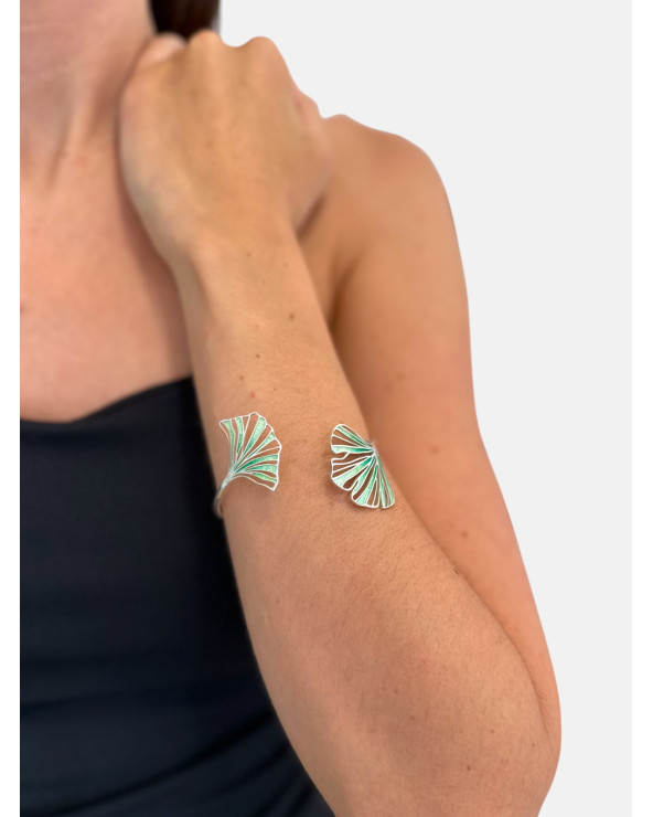 Pulsera Biloba abierta en plata de ley 925 brillo con pigmentos naturales realizados con la técnica SIMELTECH®.